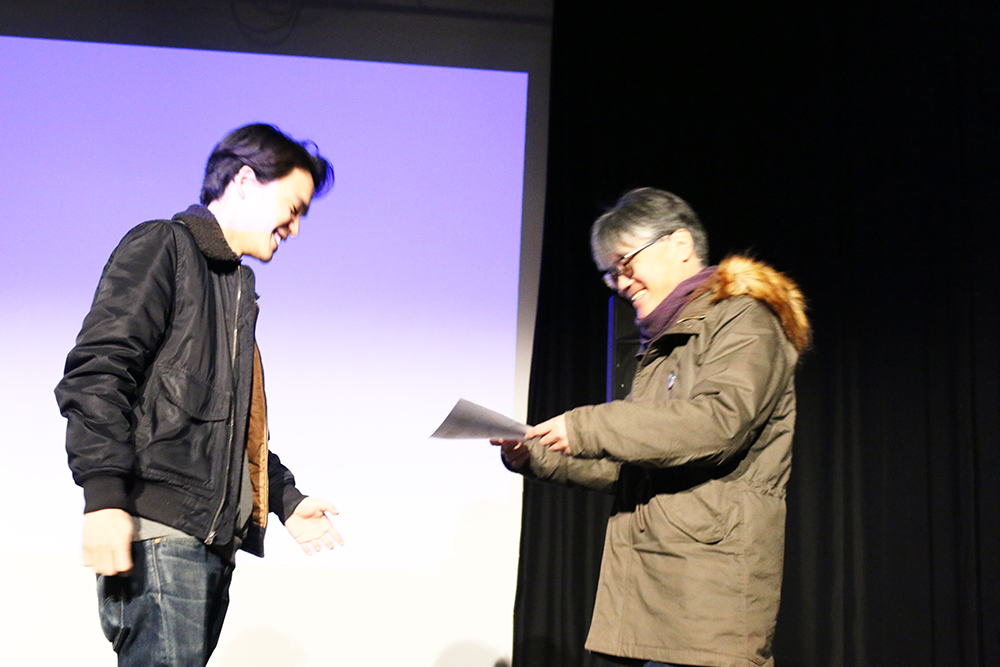 映画学科のある高原校舎内Aスタジオでは10時半から各賞の授与式を行った後、Aスタジオと試写室及び本学@カフェのブースで映画を上映が始まりました。