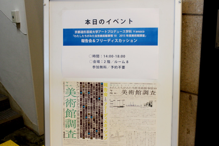 先日、大阪府立江之子島文化創造芸術センター(以下:enoco)にて、2015年度美術館調査 報告会・フリーディスカッションが実施されました。