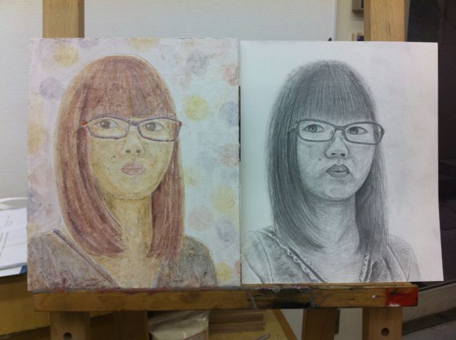 さて、1年次生も自画像フレスコ画の制作が一段落し、先日は合評会でした。