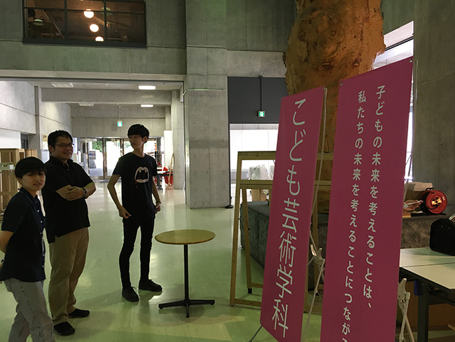 明日は、ワークショップはもちろん楽しんでいただけますが、こども芸術学科の先生方も揃っていますので、こども芸術とは?大学での授業や就職先含めわからないことは何でも聞きに来てください。