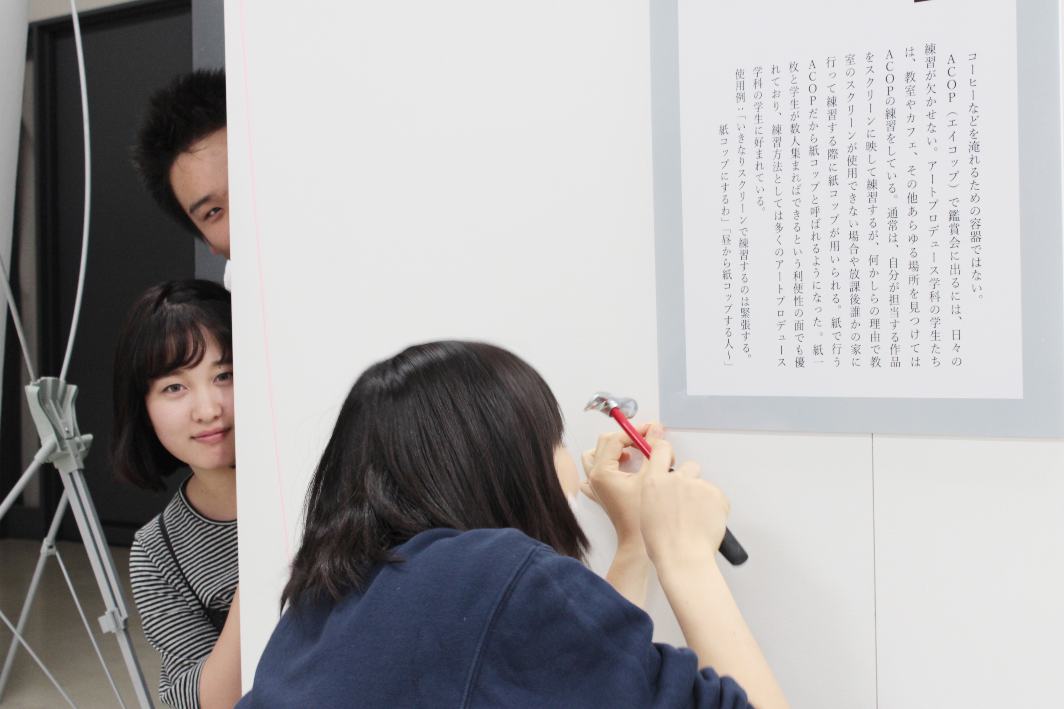 9月18と19日の大瓜生山祭のあいだ、人間館4階のNA409教室では3回生によるアートプロデュース学科の作品展を開催しています。
