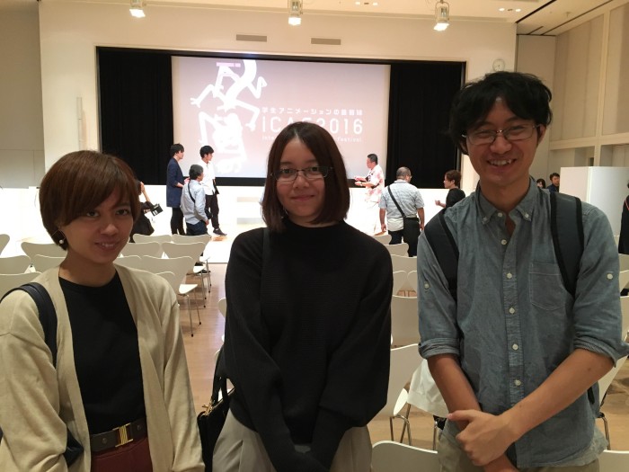 左より、内田彩香さん(グラフィックデザイナー)、山田菜都美さん(アニメーター)、松原聡さん(アニメーション制作)