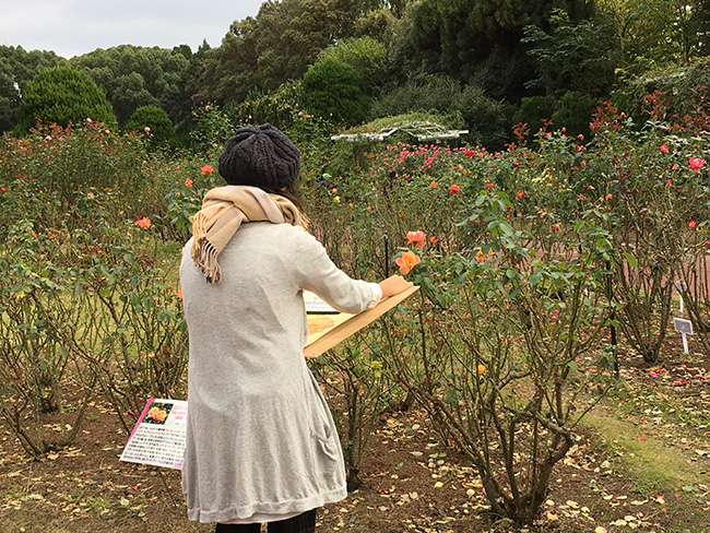 描く素材は、鉛筆、ペン、水彩絵具など各自が選びます。