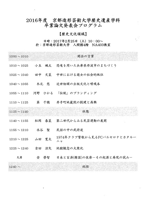 歴史遺産学科の卒業論文発表会を開催します。