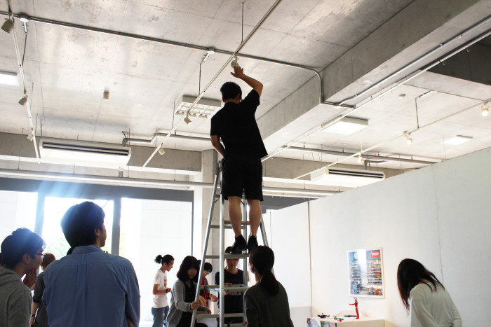 まずは、どういうテーマで作品を展示するのかコンセプト決めからスタートです。展示作品を吟味しながら話し合いを行う学生たち。次に展示のコンセプトが鑑賞者に伝わるように、作品の「みせ方」を考えていきます。
