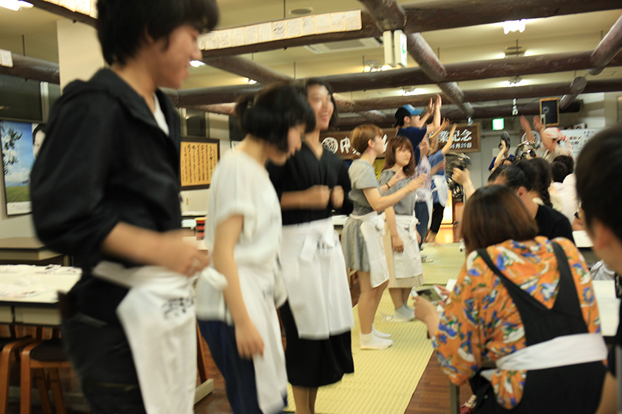 お昼は中野うどん学校で、手打ちうどん体験に参加しました。