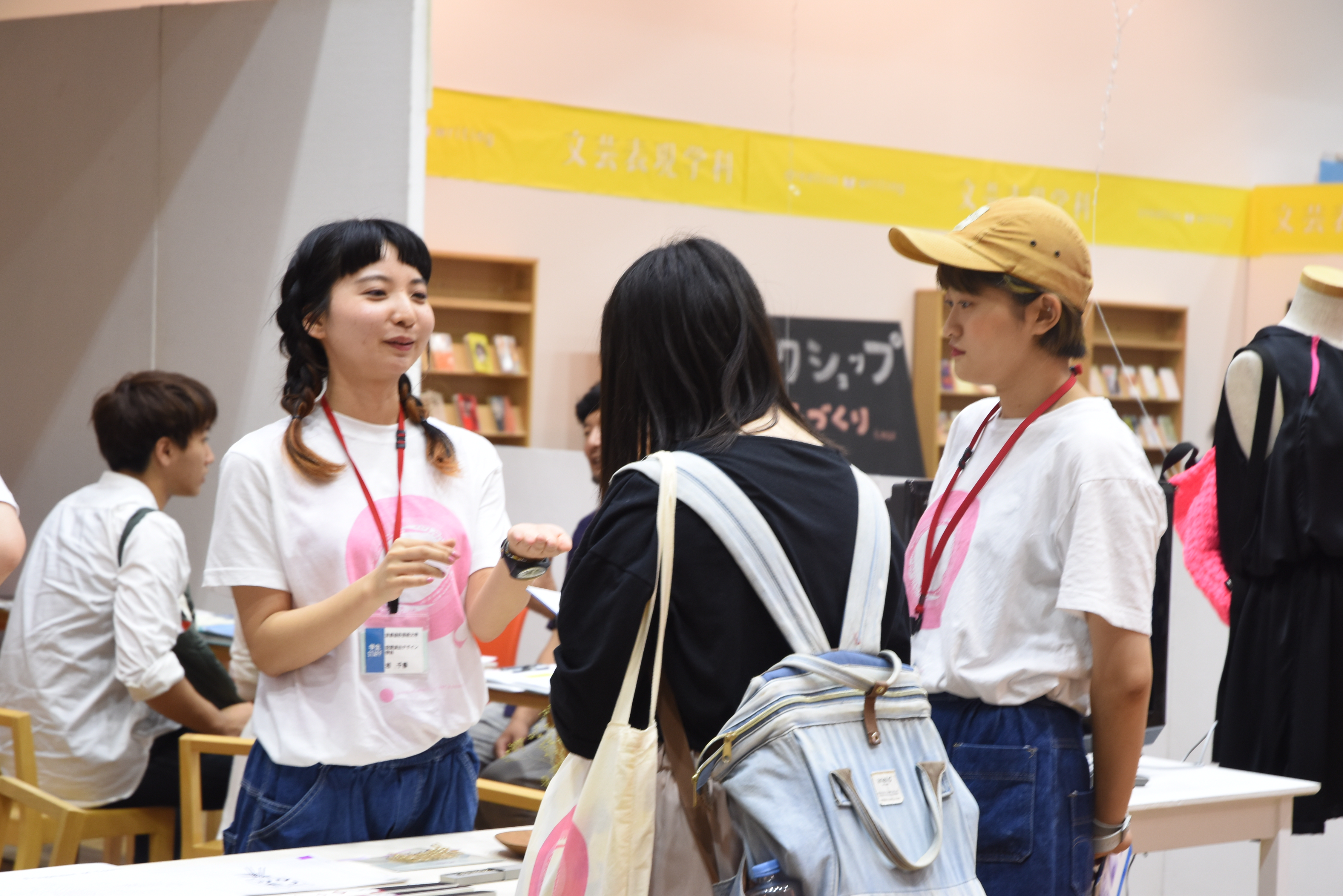 学科ブースでは学生作品を展示したり、教員相談ブースを設けています。