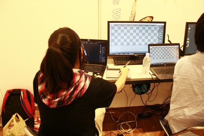 また、アニメーション制作会社に就職した卒業生のポートフォリオ(作品集)の展示・ブース中央奥では作品の上映も行っておりました!