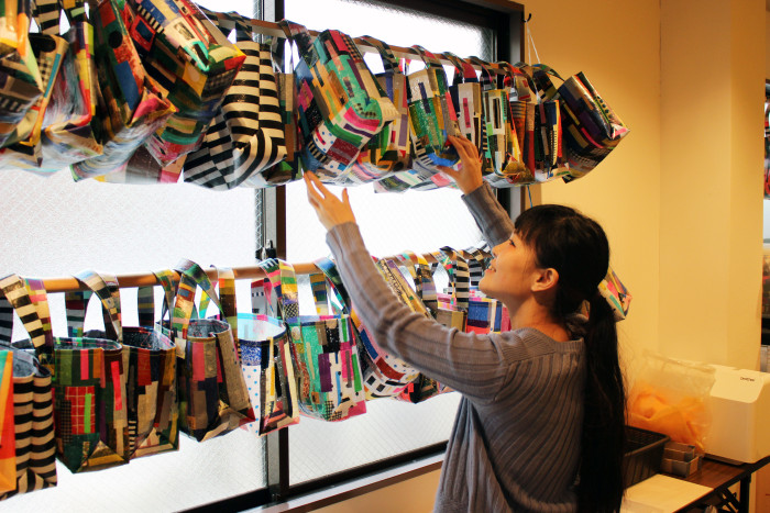 薮内さんは大阪を拠点に、知的、身体、精神障がいのある人たちが通う複数の福祉施設を行き来しながら、障がいのある人と一緒にものづくりをされています。今回出店されるのはお買い物したときにもらうカラフルなビニール袋を資源に作られたpoRiffというプロダクトです。サイフやパスケース、名刺入れやカバンなどのグッズを販売されます。