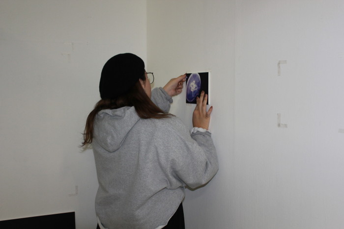 学生たちはテーマに沿って想像を膨らませながらそれぞれの「とける」を表現すると同時に、どのように展示するのかといった展示全体の流れについて考えました。その中で展示に関わる役割分担を行い、それぞれの得意なことを生かしながら展示を形にしていきました。