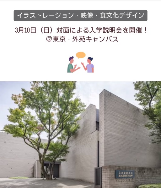 - 【参加受付中】3/10(日)東京・外苑キャンパス入学説明会(イラストレーション・映像・食文化デザインコース)