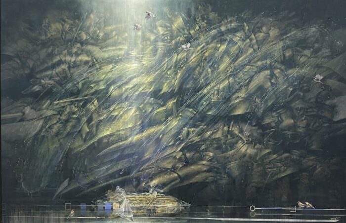 (gold story Ⅲ)2023、202cmx306cm、アクリル・油彩