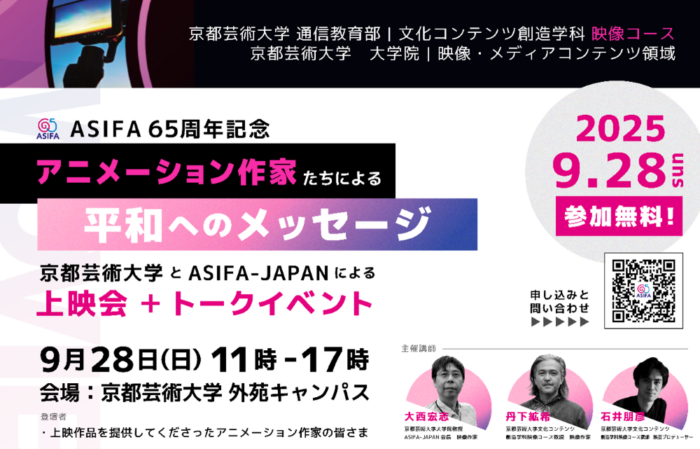そして、映像コースでは今月、ASIFA(国際アニメ―ションフィルム協会)の日本支部と協力し、外苑キャンパスでイベントを開催します。平和への思いが託された世界のアニメーション作品を上映し、それらの意義や背景について語ります。