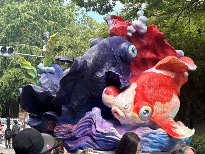 特に目を引くのがこららの巨大神輿。これらは1年生が学科ごとに分かれ、ひと夏をかけて制作するそう。ド迫力の動物たちが上野の街を練り歩きます。上野はご存じ、美術館や博物館が集まる街。商店街とタッグを組んで盛り上がるのも魅力的です。