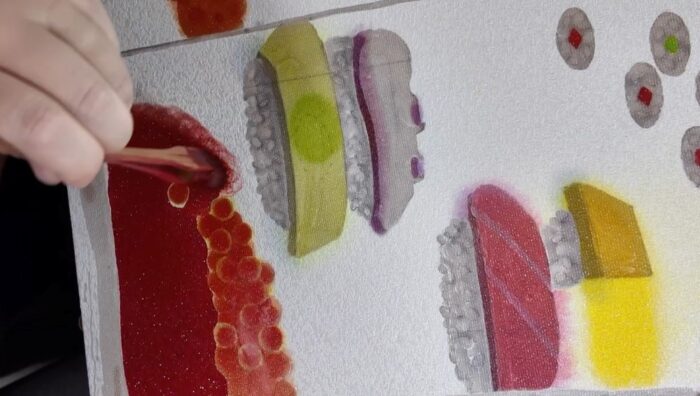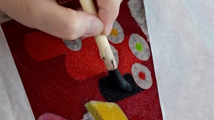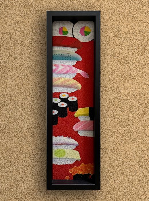 今回は縦長のサイズにお寿司というモチーフの作品です。