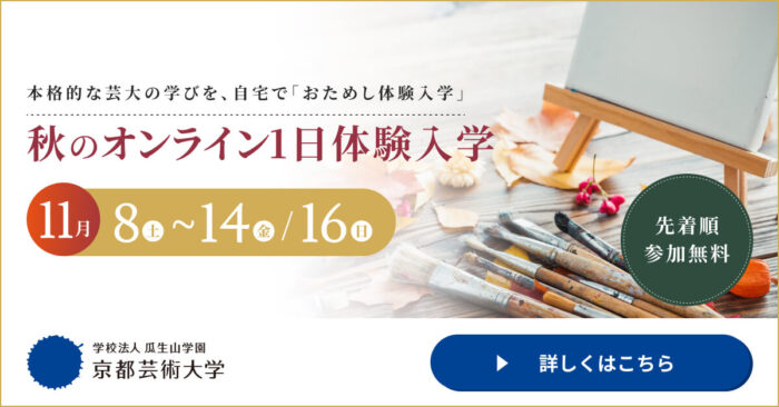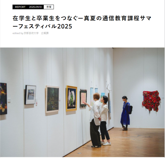例年8月に京都・瓜生山キャンパスで開催される「サマーフェスティバル」は、「卒業生・修了生全国公募展」、「アート・マルシェ」、「瓜生山懇親会」などの複合的イベントです。