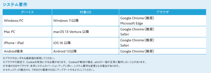 ●パソコンスキル・インターネット環境>システム要件(募集要項p.46)