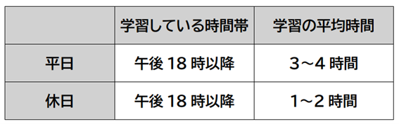 ─ 普段学習されている時間帯や平日・休日の平均的な学習時間はどれくらいですか?