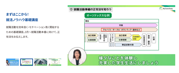 具体的な就職活動の進め方や選考プロセスにおけるポイント、企業研究の方法などの理解を深めながら、授業を通してご自身のキャリア選択を検討することができます。