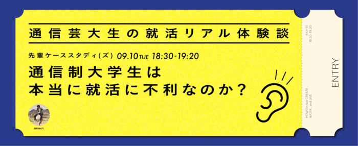 デザイナーとして内定を得た、現役在学生がゲスト登壇しました。ポートフォリオの制作過程や企業の探し方、通信制大学生であったことに対する面接官のリアルな反応などを、インタビュー形式でお伺いしました。