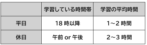 ─ 普段学習されている時間帯や平日・休日の平均的な学習時間はどれくらいですか?