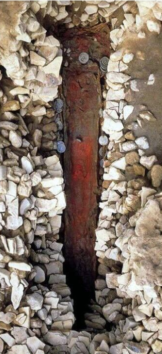 ところが古墳時代が始まると同時に、古墳時代初頭期(3世紀)奈良県天理市の中山大塚古墳(卑弥呼の墓とされる箸墓古墳とほぼ同時期)に大量の朱が撒かれるなど、大和での施朱が一気に広がるのです。
