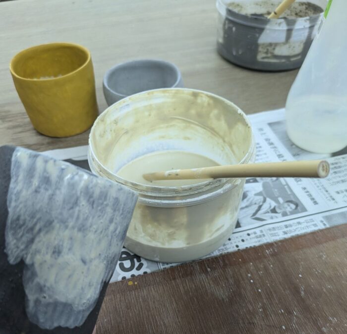 私は通常よりかなり水で薄めた釉薬、水ぐすりをよく使用しています。