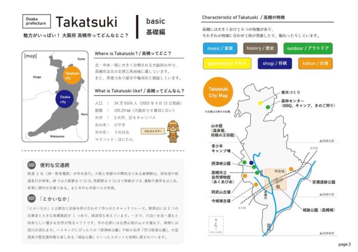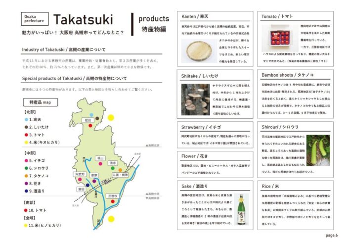 また特徴的な風景など使えるかもしれない情報はスケッチや写真で記録しておき、地理情報、歴史情報、主な産業、農産物、特産物、観光ポイント、新発見要素などを図版を交えて項目別に整理します。