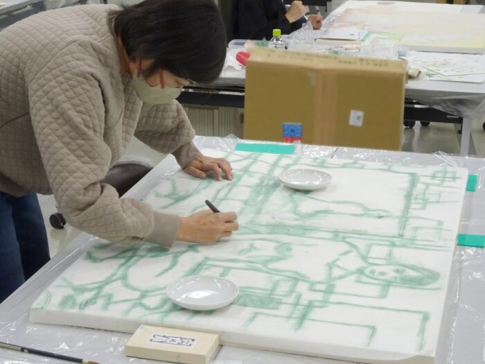 実演後、下地作りからはじまります。これからどんな作品になっていくか楽しみです!