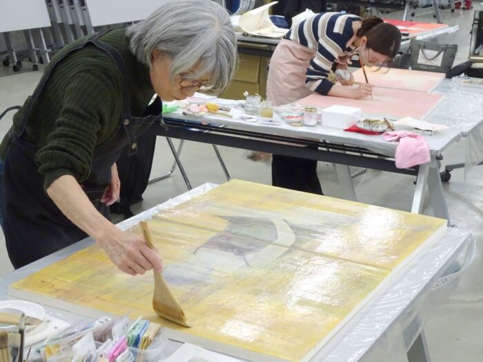 1日目の午前には山本真澄先生によるマチエールの実演が行われました。