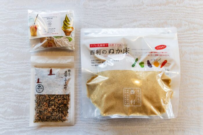 平井社長から参加者の皆さまに「発酵ぬか床」と「発酵甘麹のフィナンシェ」「いただきますアカデミー参加者専用 カフェ利用券」をプレゼント。