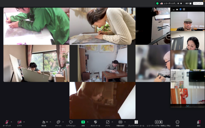 課題説明と小講義が終われば、さあ制作開始!今回はベネズエラ、香港、スイスと海外からも受講されており、場所に加え時間までも様々な環境下での遠隔授業です。