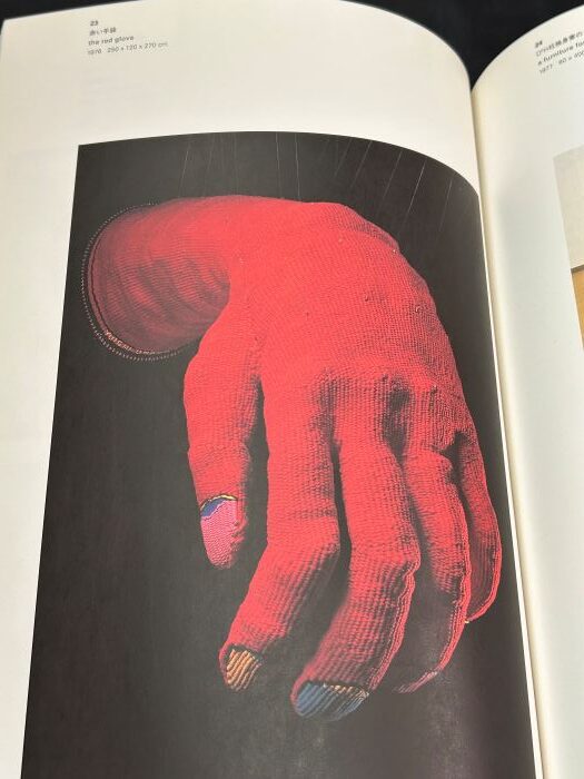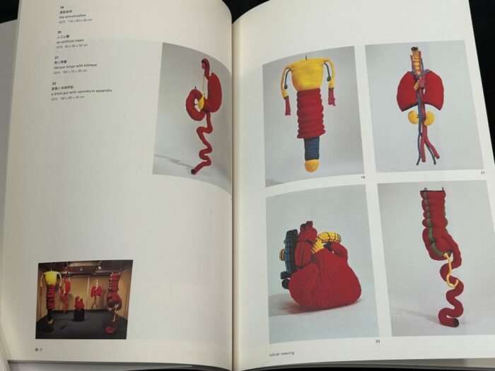 立体的に織るという独自の方法に加え、そのモチーフとされた巨大な手や足、臓器などが目にも鮮やかな色で織られていて、当時目にした人がさぞ驚いたことだろうと想像できます。『誰でもできる織りもの 現代の織り』の表紙となった「裸の花嫁」は1973年発表とのことなので、私がその衝撃に出会ったのはかなり後のことです。