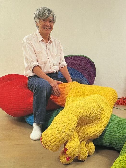 小名木先生と作品(『誰でもできる織りもの 現代の織り』至文堂より)