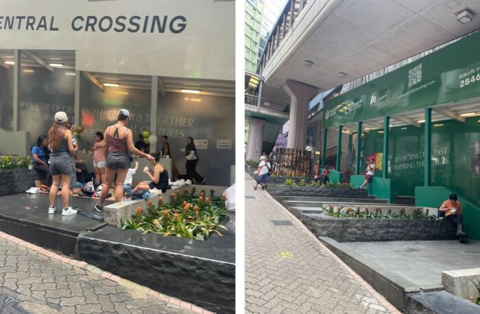 左:家政婦たちがたむろする日曜の街の一角、右:平日の同エリア(筆者撮影)