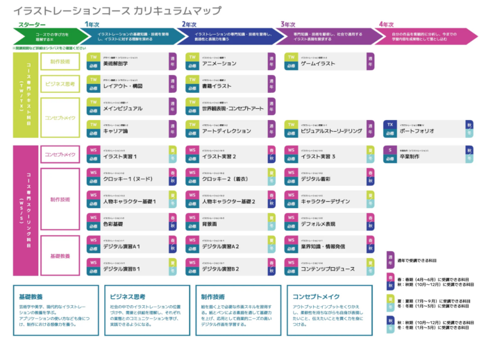 さらに、作画だけでなく、業界分析や著作権などイラストを扱うための知識を学ぶ授業もあるため、適性を見極めたうえで、その分野を仕事にどう生かしていくかまで学べます。
