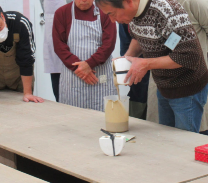 次に、先程作った泥漿を型に流し込む工程に入ります。
