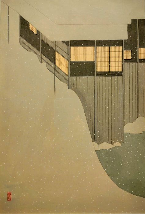 小村雪岱「雪の朝」木版多色刷、1941年頃[*没後の刷り]、埼玉県立近代美術館蔵