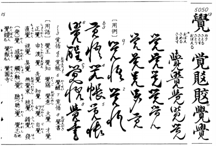 ちなみに「覚」は児玉幸多編『くずし字用例辞典 普及版』(東京堂出版、1981、→「くずし字を読む」)ではこんな感じです。