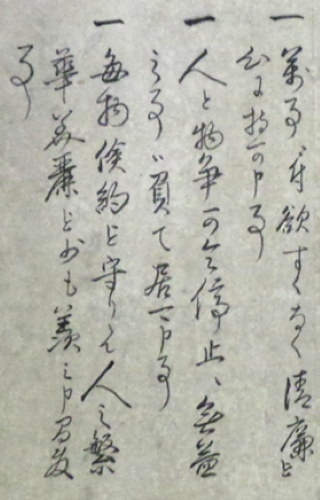 「一、万事ニ付、欲すくなく、清廉を心に持可申事