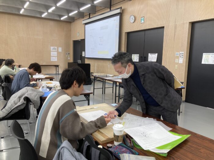 2月に行われた外苑キャンパスでのスクーリング報告です。設計のスクーリングも4回目を迎えました。今回は石井博史先生にご指導いただき「町並み景観とポケットパーク」という課題で学びます。いままでよりも設計の面積が広くなり、公共性も増して難易度が上がりました。