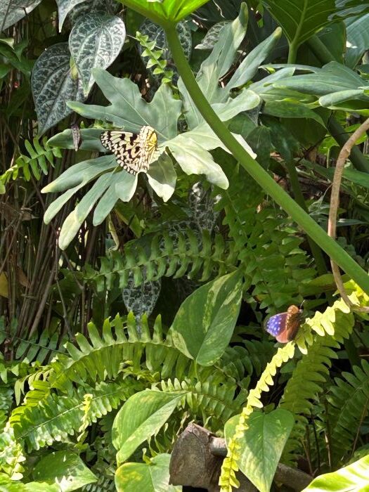 さまざまな昆虫の展示の他、1000匹の蝶が舞い飛ぶ温室があります。多くの来館者は、暖かくて色とりどりの花が咲く温室に吸い寄せられるようです。たくさんの蝶が大切に飼育され、放たれています。