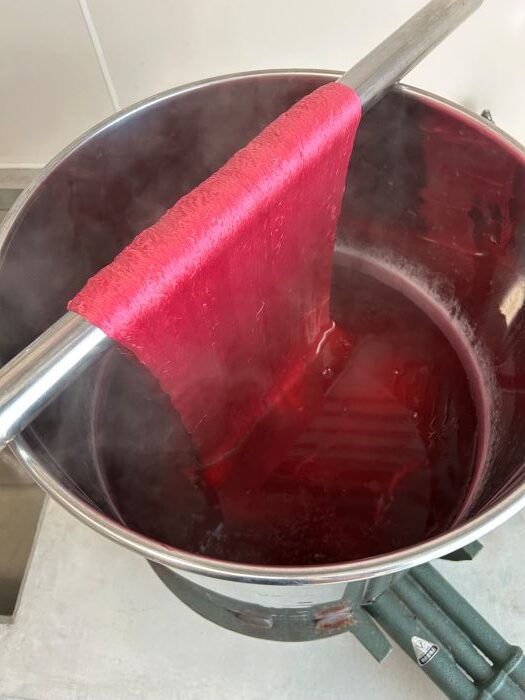 天然染料の中ではコチニールやラックといった貝殻虫で鮮やかなピンク色や赤色が染まります。貝殻虫の体内でそのような色が醸成されていることは驚くべきことですね。