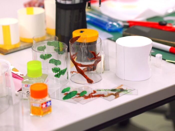 布、紙、スチレンボード、プラスチックなど、学生によって使用する素材も様々です。