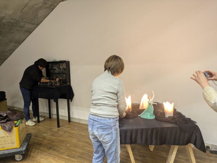 展示をする上で、ご自身で板や布の準備したり、ライトを使用した作品、展示台を作られた方もいました!
