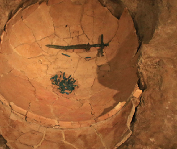 吉野ケ里遺跡北墳丘墓出土の甕棺墓内部の朱と共伴資料(王の墓)