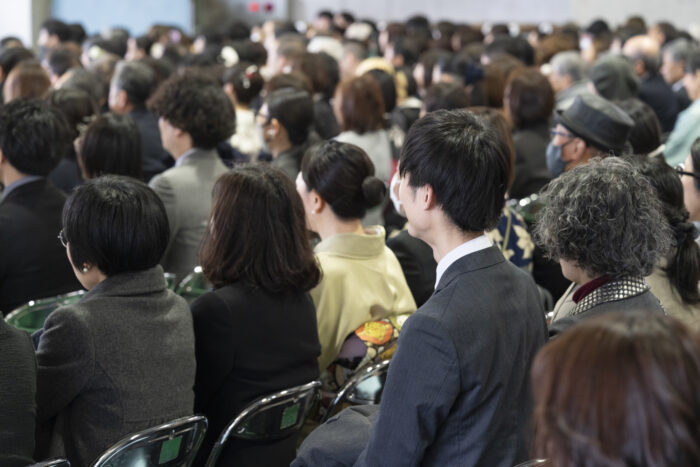 式典への参加は任意となりますが、今年は約840名の学生さんやご家族の方も一緒に全国から参加されました。またライブ配信で式典に参加された学生さんも多くいらっしゃいました。