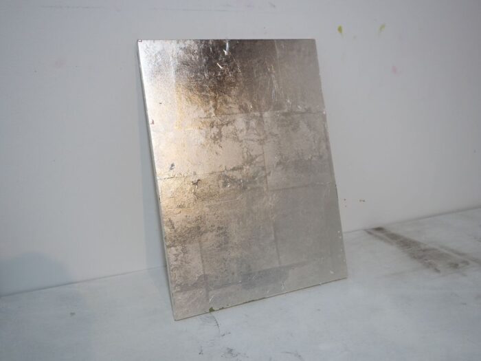 初めに箔を貼ったパネルを用意します。箔は繊細な画材なので、硫化させる作業の際に破れてしまうことが無いよう、貼って一晩以上たってから次の作業をするようにしましょう。また、通常の箔はりの作業の後は表面保護のためにどドーサを塗るように授業などでも説明があったことかと思われますが、硫化させる際はドーサ液は塗らないようにします。