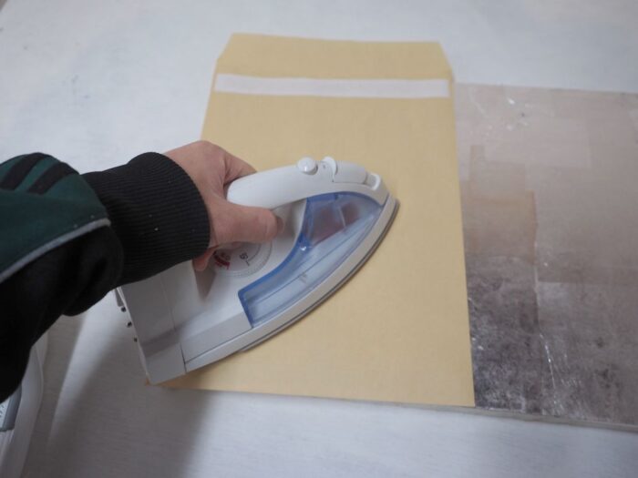 硫黄が封筒の中に入ったら、反応させたい箇所に載せて熱したアイロンを押し付けます。