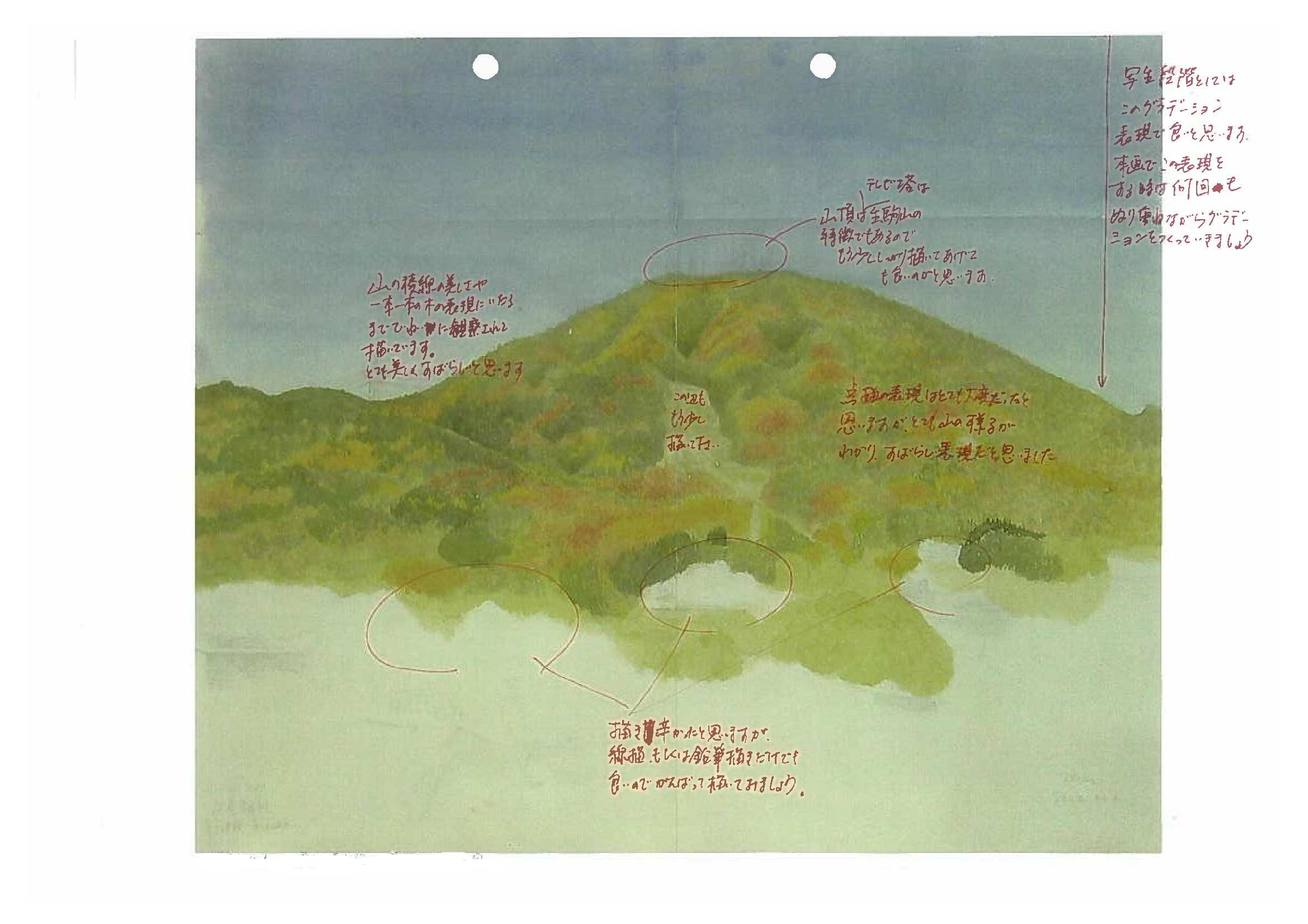 大判の用紙に風景を写生すること自体が初めてで、良い経験となりました。また、日本画で風景を描くのも初めてで、どんな手順ですすめるかなどについて、動画教材が大変参考になりました。風景のスクーリングも楽しみです。